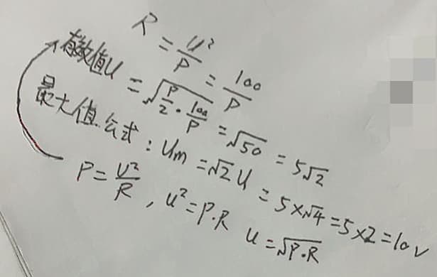 - 一个电热器,接在10V的直流电源上,产生的功率为P。把它改接在正弦交流电源上,使其产生的功率为P/2,则正弦电源电压的最大值为