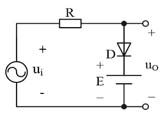 - 电路如图所示,设图中二极管为理想二极管,输入电压为 Ui=5sinωt(V),E=2V,试画出输出电压 Uo的波形。