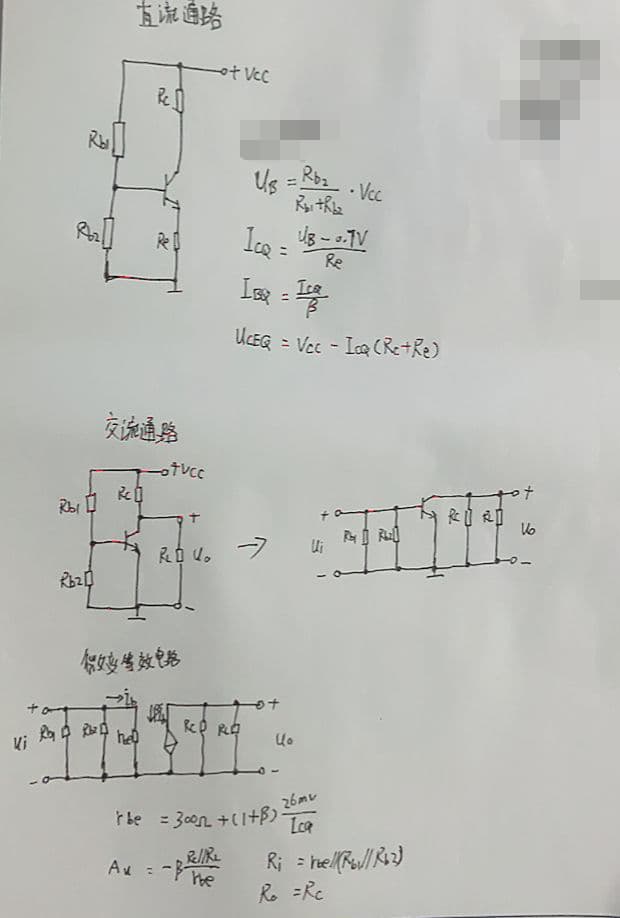- 已知电源电压、各个电阻的值、三极管的电流放大倍数 β 以及 rbb’